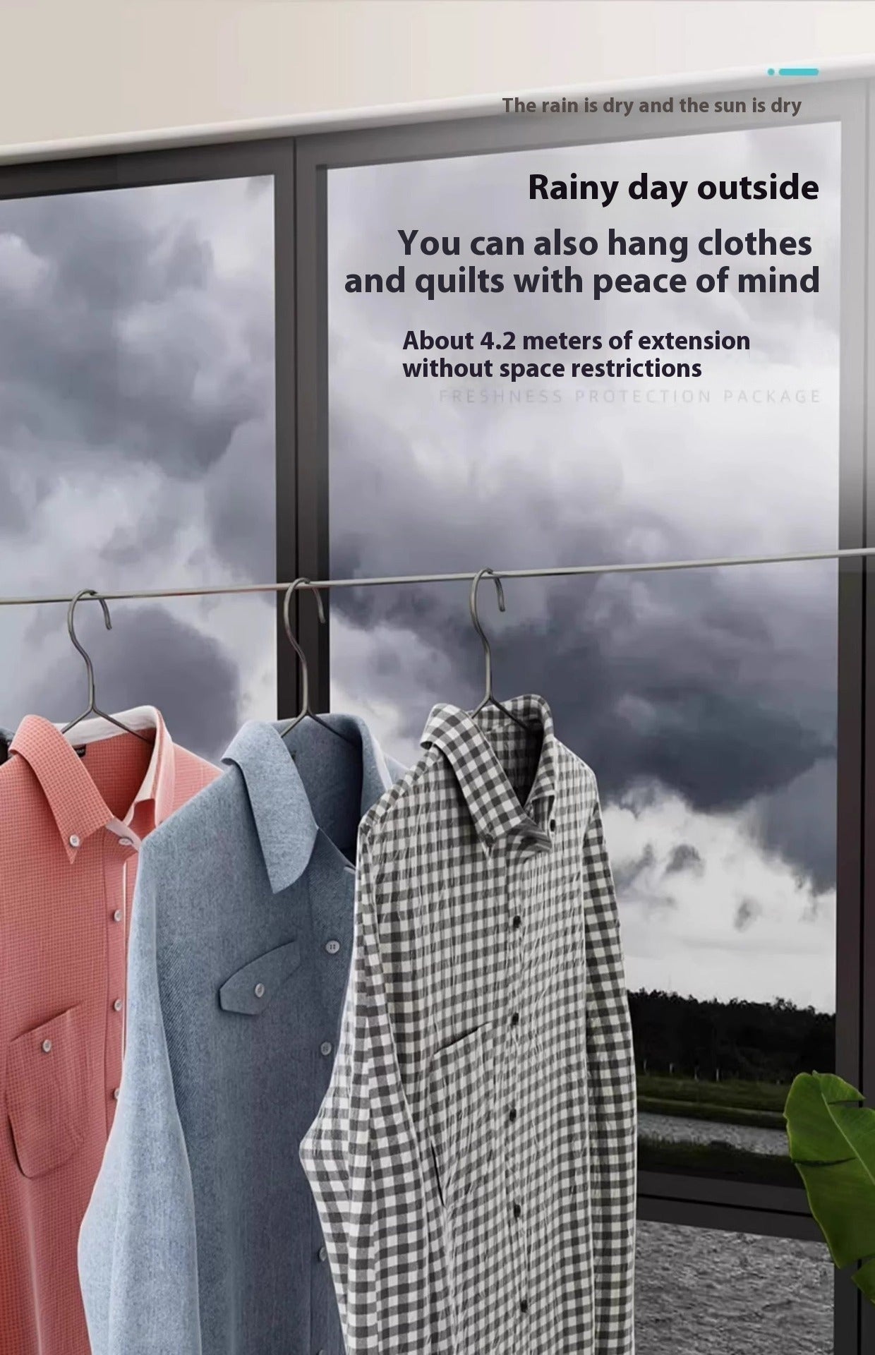 The MEILI HOME Telescopic Clothesline is a retractable, small-space-friendly clothes drying rope. It is perfect for drying clothing indoors in bathrooms, laundry rooms, balconies, or flats because it is made of a sturdy 1.5mm steel wire that reaches up to 4.2 meters.